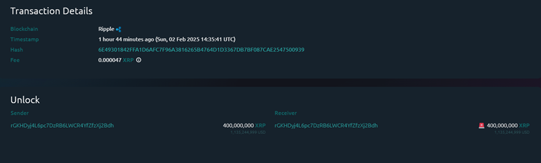 Mặc dù XRP không có thời gian vesting* theo kế hoạch vào ngày 2/2 hoặc trong các tuần thông thường, nhưng đã bất ngờ mở khóa token vào ngày 2/2.