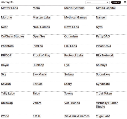 Danh mục đầu tư của a16z bao gồm hơn 100 công ty tiền điện tử, trong đó có sàn giao dịch phi tập trung (DEX) nổi tiếng như Uniswap. Trong khi các công tố viên Hoa Kỳ từng cố gắng buộc các nhà phát triển phải chịu trách nhiệm về các hoạt động mà bên thứ ba thực hiện trên nền tảng của họ, a16z ví von điều này giống như việc buộc các nhà sản xuất ô tô chịu trách nhiệm cho tai nạn do tài xế gây ra.