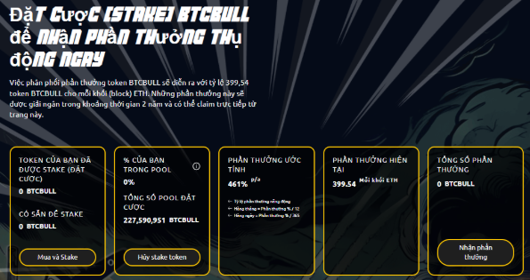 Không dừng lại ở đó, BTC Bull còn mang đến một cơ hội kiếm tiền cực khủng khác từ việc staking. Nhà đầu tư có thể staking $BTCBULL ngay từ giai đoạn presale, với mức lợi nhuận hấp dẫn 688% APY. Tuy nhiên, tỷ suất này sẽ giảm dần theo thời gian, vì vậy tham gia sớm sẽ là một lợi thế lớn.