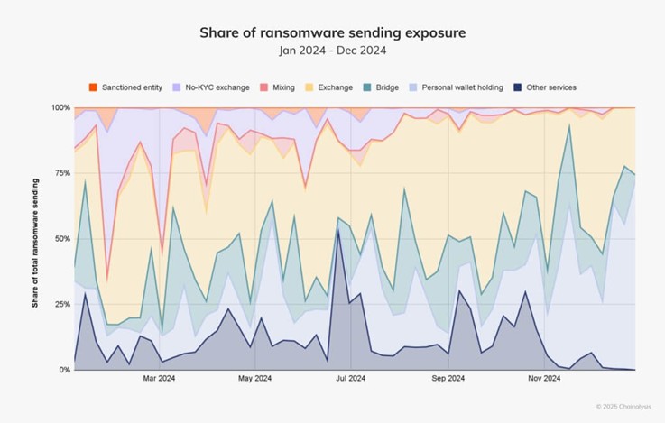Ngay sau đó, dòng tiền liên quan đến ransomware chảy vào các nền tảng no-KYC giảm mạnh, củng cố hiệu quả của các hành động quản lý.