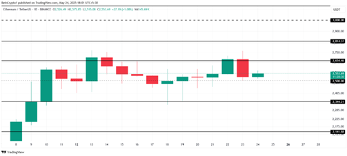 Nếu xu hướng giảm tiếp tục chiếm ưu thế, ETH có thể chứng kiến thêm các đợt điều chỉnh trong ngắn hạn. Tuy nhiên, trong trường hợp lực mua quay trở lại, Ethereum hoàn toàn có khả năng lấy lại vùng hợp nhất giữa 2.500 và 2.654 USD.