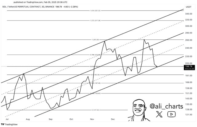 Hiện tại, giá Solana vẫn giao dịch bên trong một kênh song song, có khả năng định hình những biến động thị trường sắp tới. Nhà phân tích thị trường Ali Martinez dự báo hai kịch bản giá có thể xảy ra: Solana có thể giảm xuống vùng hỗ trợ $150, nhưng nếu động lực tăng giá đủ mạnh, tài sản này có thể leo lên mức $350.