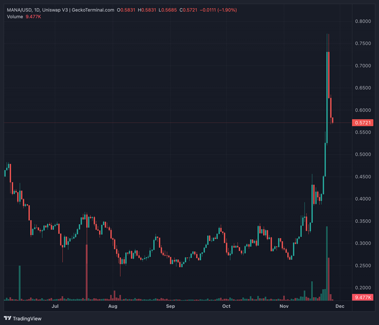 Ngay sau khi ra mắt, Decentraland đã tổ chức sự kiện âm nhạc thường niên trên nền tảng mới, với sự góp mặt của nhiều nghệ sĩ nổi tiếng như DJ EDM ‘Whipped Cream’. Nhờ đó, token MANA đã tăng gần 100% trong tháng 11, đạt mức giá cao nhất trong hơn sáu tháng, phản ánh sự quan tâm ngày càng lớn từ cộng đồng người dùng.