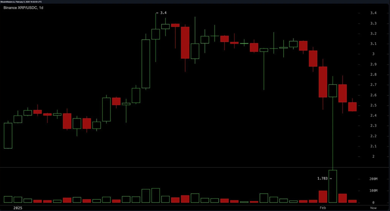 Trên biểu đồ hàng ngày, XRP đã bị từ chối mạnh mẽ tại $3,40, kích hoạt một đợt giảm sâu. Mốc $2,42 đã thiết lập vai trò là một vùng hỗ trợ quan trọng khi khối lượng mua vào tăng mạnh tại đây. Tuy nhiên, việc không thể duy trì trên các đường trung bình động chính, cùng với áp lực bán tiếp diễn, cho thấy xu hướng giảm vẫn chưa dừng lại. Các ngưỡng kháng cự từ $3,00 trở lên vẫn duy trì, và bất kỳ đợt phục hồi bền vững nào cũng cần vượt qua vùng $2,80 – $3,00. Nếu hỗ trợ tại $2,40 bị phá vỡ, XRP có thể đối mặt với sự sụt giảm sâu hơn, trong khi việc bật lại trên $2,70 có thể giúp thị trường lấy lại trạng thái cân bằng hơn.